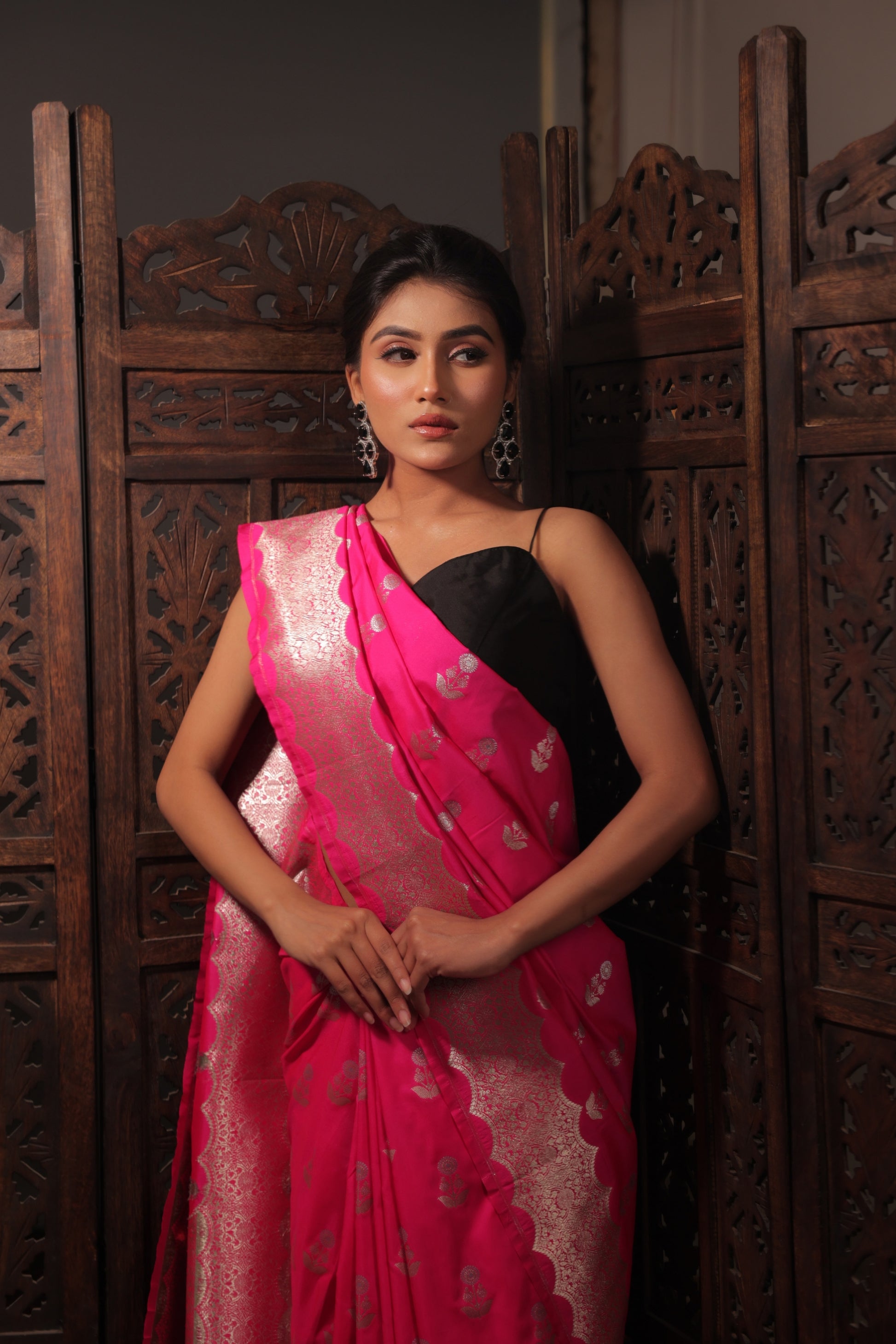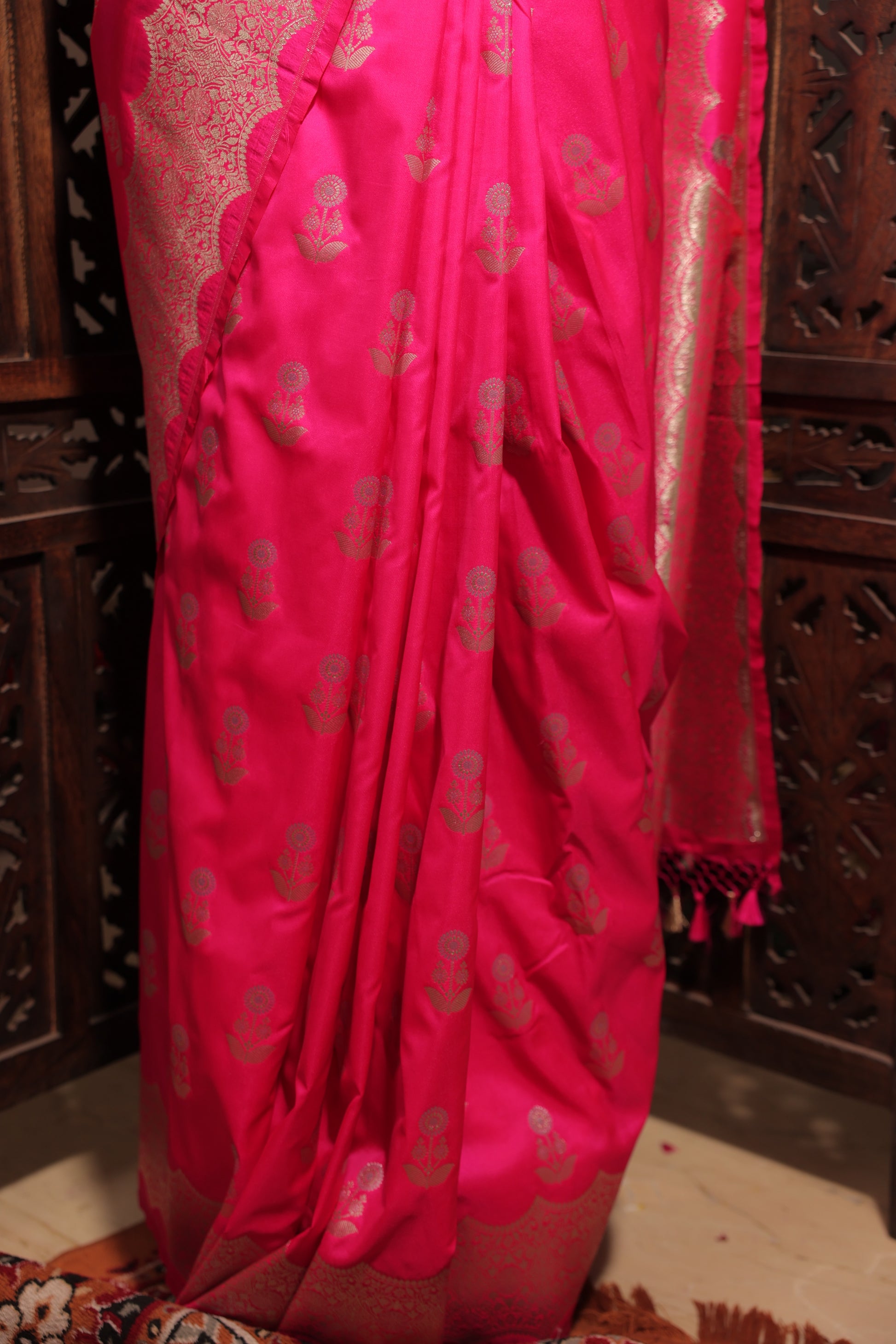 Teaberry Buds – Pure Silk Pink Banarasi Saree