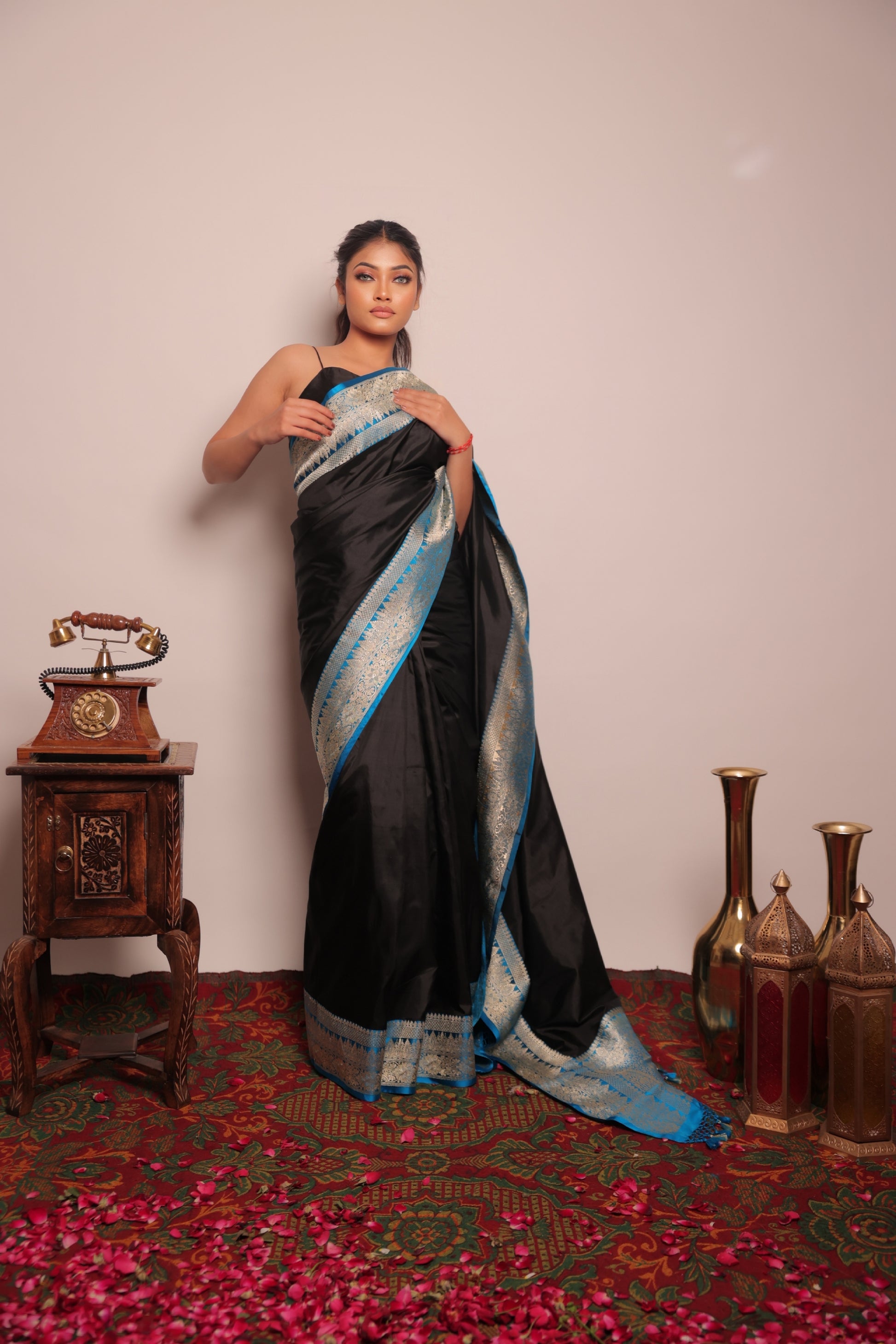 Midnight Rush – Banarasi Pure Katan Silk Black Walkalam Saree
